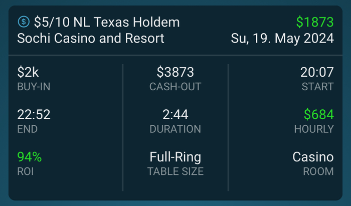 Отыграли турбо сессию в очень хорошем составе. В какой-то момент остались играть 4-5 макс с любителем в дипах по 3 тысячи со страдлом от него. Раздачи полетели быстро. Не сложилось в паре дорогих моментов, мог выиграть сильно больше. Но игрой доволен, наконец-то начал кайфовать от технической стороны, а не испытывать тотальный кринж от собственного перфоманса