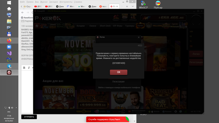 Обработав вашу заявку, ПокерОК передаст информацию платежному провайдеру. В большинстве случаев поиск платежа займет не более нескольких дней, но в редких случаях может затянуться до нескольких недель. Пожалуйста, не отправляйте повторные запросы в саппорт чаще, чем раз в несколько дней, это не ускорит процесс. Спасибо!