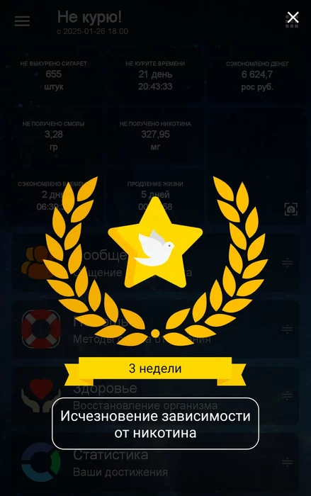 Поставил себе это приложение, держался как только мог и сегодня у меня знаменательный 21-й день!