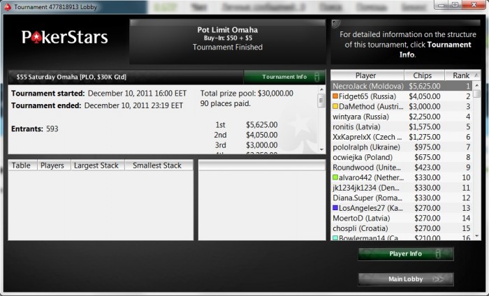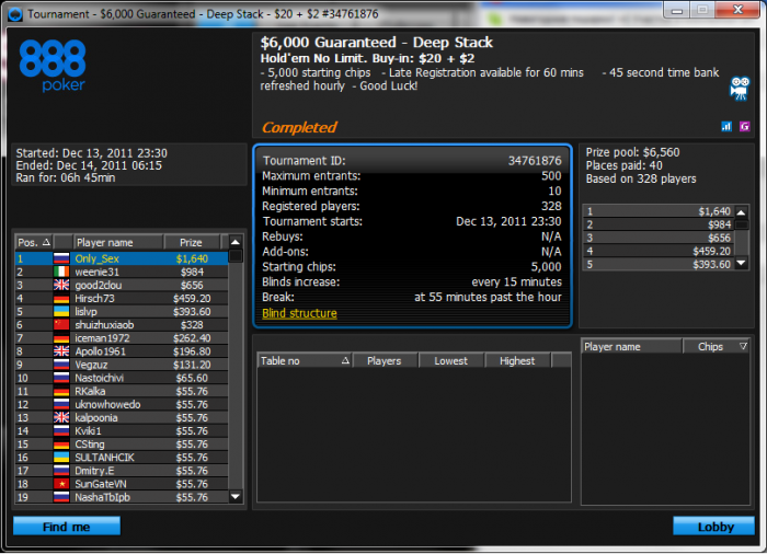 За целый год беспросветной долбежки в воскресные лотереи автомат наконец-то отдал. К ХА силы окончательно покинули меня и имея примерно равные стеки поделили с оппонентом.