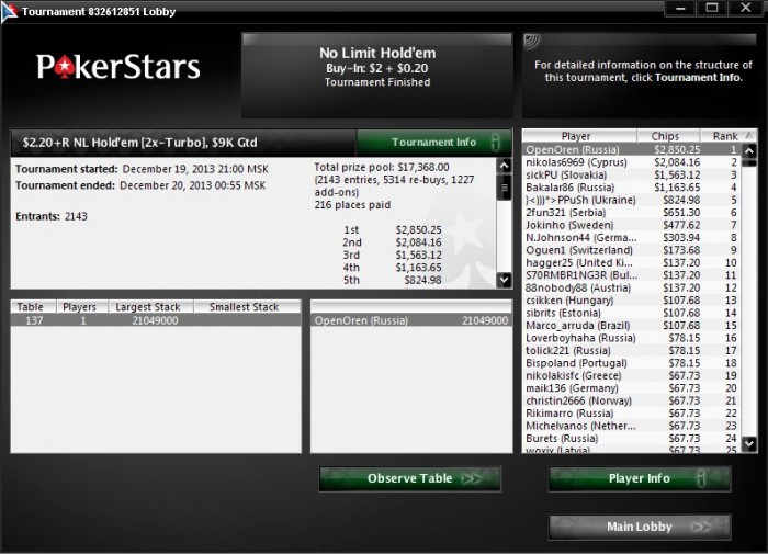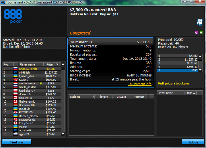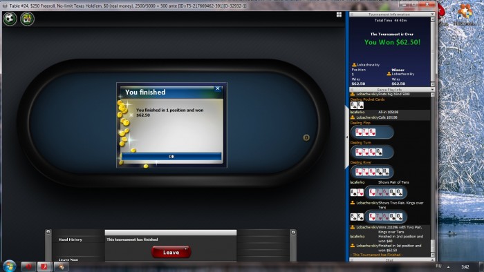 так от скуки в конце сессии, решил подгрузить Ирландский покер так-как никогда его не играл. Это была самая нищебродская ХА дележка в мире!!!! играли 4 часа.... в конце всё было дело принципа............. зато есть скрин чтоб поржать