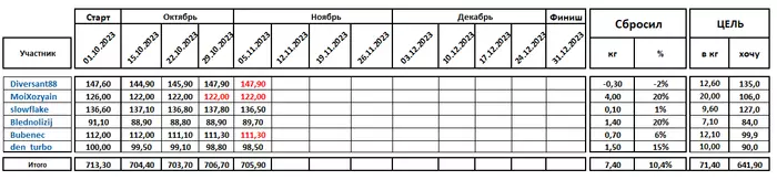 (-3,5 кг с начала марафона, цель достигнута на 49%)