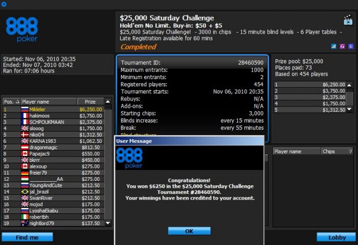 По поводу 888 примерно такая же ситуация. Пытался сделать вывод в 250$ и через неделю получил их обратно на счет)) Попытка вывести 120 прошла успешно (неделя). Сейчас жду второй вывод 130$)) надеюсь отдадут). Что-бы чего добиться от саппорта видимо нужно звонить и ругаться... делал запрос на историю всех расходов со счета (не досчитался 9,8$): через неделю позвонил молодой человек, уточнил за какой период необходима история и пропал)) Недавно попытался сменить эл. почту, уже дважды писал письма и никакой реакции... х.з. что делать. А по поводу софта ты прав, мне тоже приятно играть, вот бы они еще наладили нормальные условия для игры.