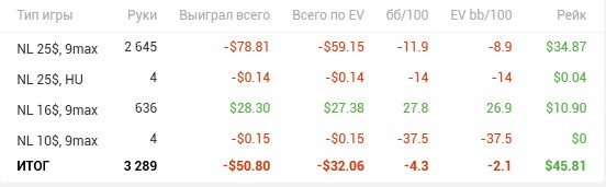 Но, что из хорошего. Во-первых, вчера на 25ке складывалось паршиво, тильт хоть и был, но, тем не менее, сумел закрыть столы крестиком, а не сидеть в замазке. Критических ошибок не совершал, лишнего не довесил (ну, разве что чуть-чуть). График чекал, это плохо