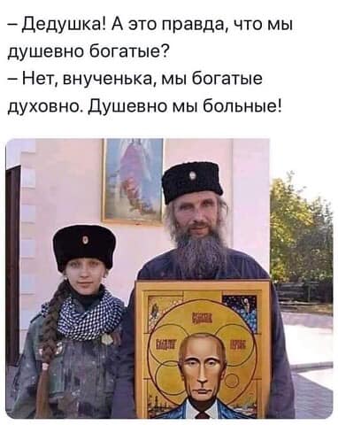 Julio @ 02.11.21Эта фотка из 2001 года, когда страна все еще находилась во власти мракобесия 90тых и Владимир Владимирович не успел навести в стране порядок, а Церковь еще не довела до народа духовные скрепы, нас объединяющие
