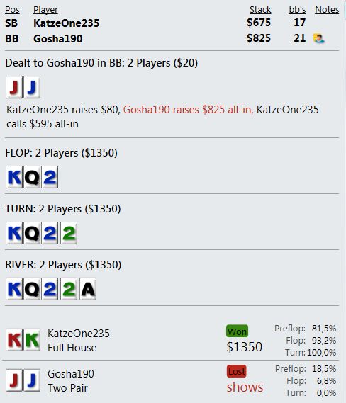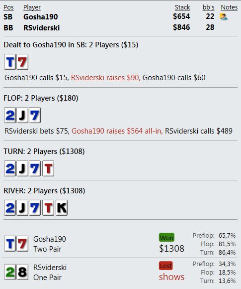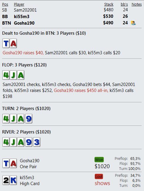 Потом в ХА лимп-колил А5 и вынес мои 66, потом оупенпушил А8 и вынес мои 55 и финальная рука - как можно так сдавать в одну сторону? Бесит!