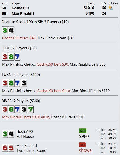 Даже с учетом последней руки турнир я сыграл в +300 фишек, но ничего не смог сделать против режима бога.