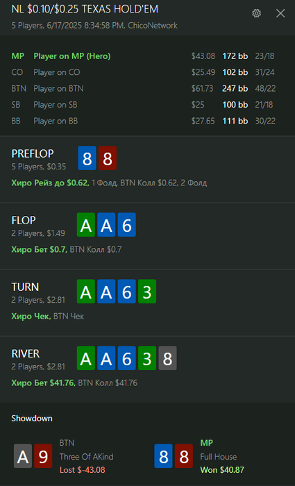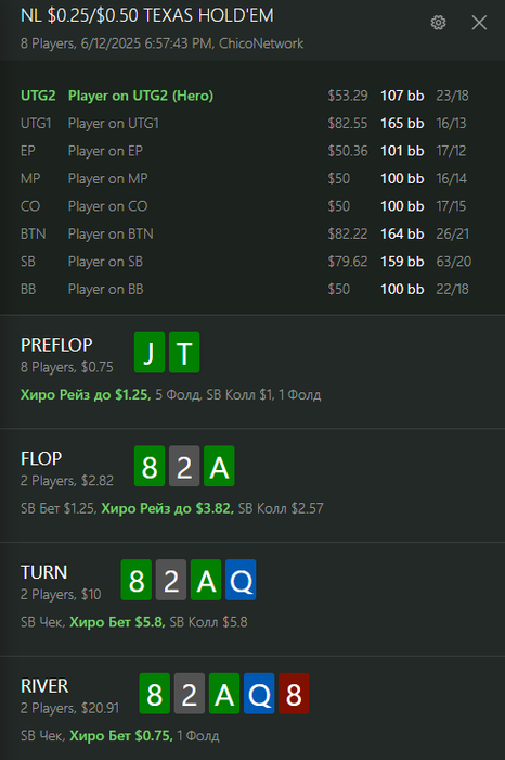 Я не считаю, что супер классно сыграл свою руку, но и отвратительным назвать, однозначно нельзя.