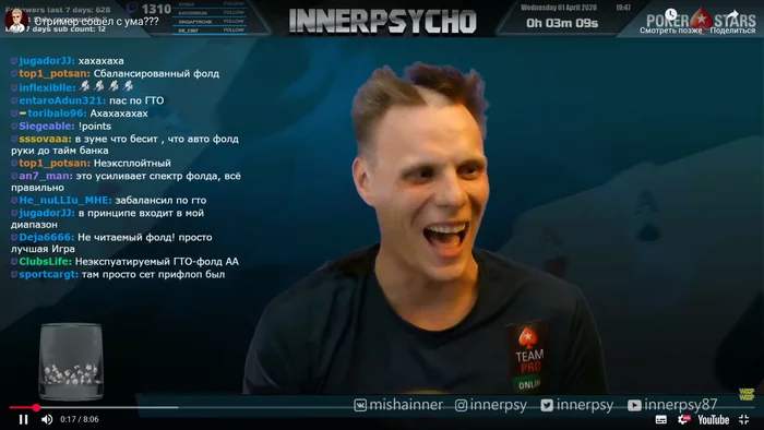 Оказалось, что твич – это новое телевидение. А так как оно для школьников, то там нужно материться и вести себя как животное. Я возразил, что покерные стримы точно не такие. Мы проверили.