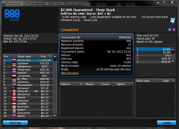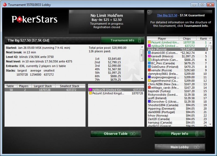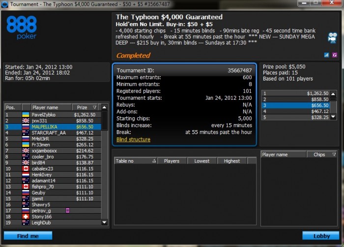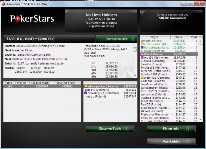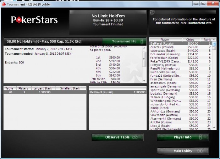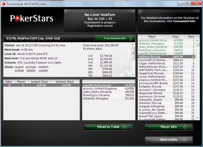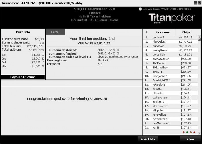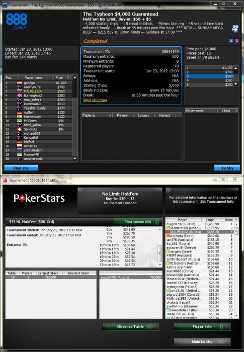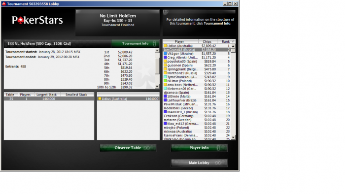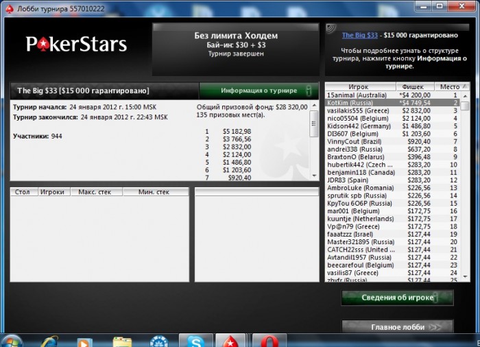 наконец-то ПС начал отдавать))) Занес The Big 33$(гарантия 15к) поделили с автралийсуим чудаком, я взял больше т.к стек был больше) получил 4749,54$ автралиец получил 4200$))