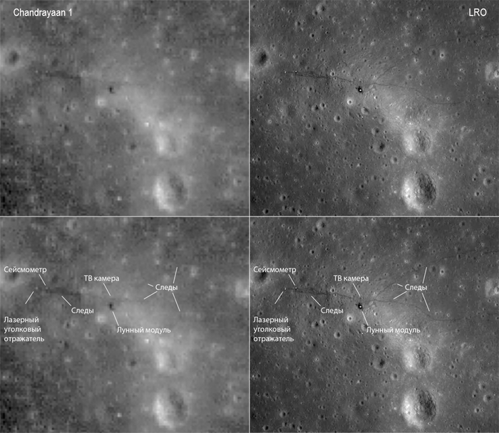 Вот как выглядит одна из высадок сверху (слева индийские снимки справа американские)