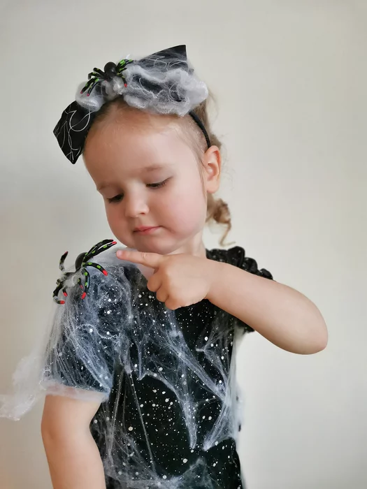 В среду, 30 октября, мы внезапно обнаружили объявление в детском саду о том, что на следующий день, 31 октября, будет хэллоуин и детей ждут в костюмах. Это объявление нас, дисциплинированных слоупоков, застало врасплох. Жена отправилась в магазин искать какой-нибудь костюм и с удивлением обнаружила, что почти вся атрибутика, а тем более костюмы, были раскуплены. По магазину, разглядывая полупустые полки, скитались точно такие же слоупоки, не знакомые со значением слова "планирование" и безуспешно искавшие хоть что-то подходящее. Для моей супруги вояж по магазинам закончился вполне успешно - она купила обычное черное платье, немного атрибутики - резиновых пауков и ватную паутину. Полчаса работы и получился вполне себе неплохой наряд для старшей дочки. Для младшей бодик на тему хэллоуина уже имелся. А мне хорошо и безо всяких бесовских костюмов.