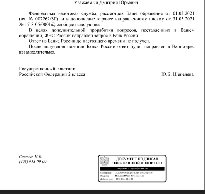 Все остальные мнения - это мнения ДРУГИХ людей, а нам нужно мнение ФНС. Или Центробанка накрайняк
