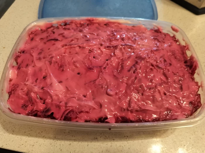 Спустя 3 часа последний слой на месте, отправляем контейнер в холодильник.