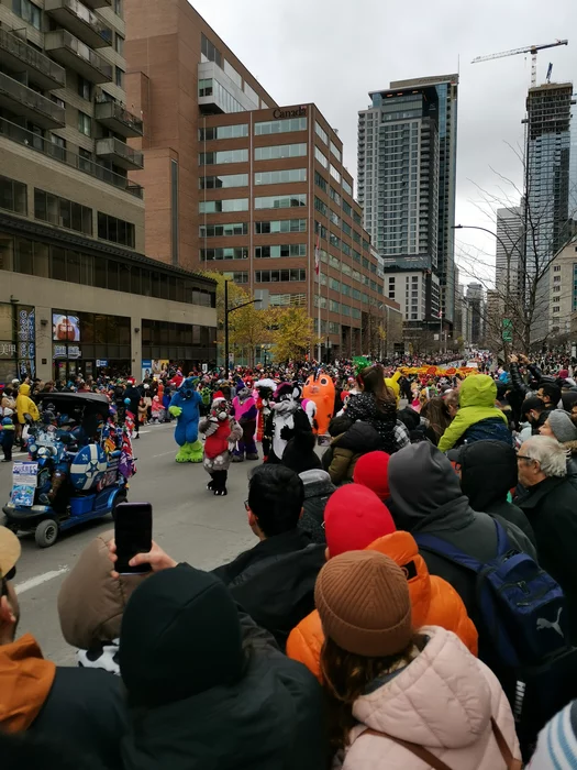 Другие чуваки - маскоты (или фурри?), какие-то непонятные надувные животные. Слева в кадре - Капитан Квебек, который переделал костюм и щит своего американского товарища на местную тематику и рассекает на коляске.