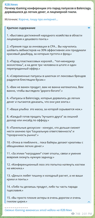 Этика такая этика. Сегодня в одном из каналов, который я время от времени чекаю про iGaming конференцию