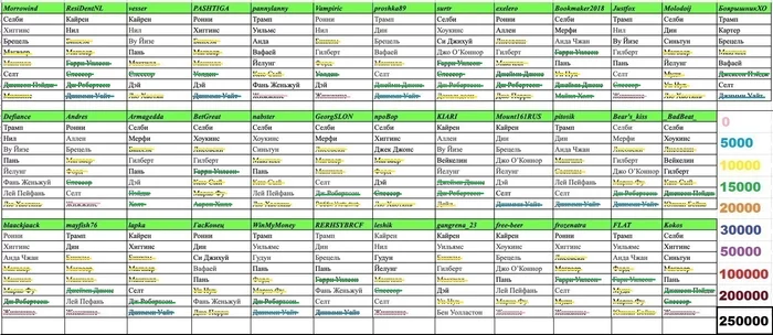 Мда, конечно.. Может мало кто поверит, но очень терзала мыслишка взять на побаловаться систему 3/5 победы Гао Яна, Бернса, Джонса Д, Ван Ючена, и Чжан Чжуна, все по вкусным кэфам. В итоге чёт забил, и пошёл спать. Щас проснулся, и стал много материться, мысль то здравая была, оч близко к деньгам, хоть и не факт что все доедут 🫣