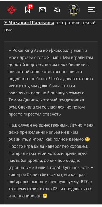 Короче худший рум в покере в плане сохранности средств, закидывая туда деньги, имейте в виду, что сейчас там управляют те же люди, что и пару лет назад.