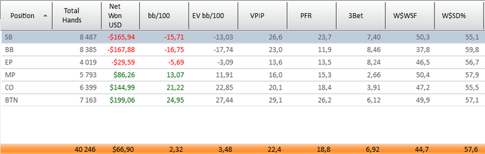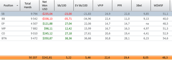 Как то тяжко было в этот месяц. Айпокер закрыл доступ для моей страны, выбор рума, ожидание кешаута, переживания. Но все прошло хорошо, выбрал ПС, посмотрим как пойдет. Пока вроде норм, если б не последние дни то винрейт был бы 8бб, а так стрикануло немного( Под поляну подстроился - это видно по 3бету и ввсф. Голд набил, бр хватает для нл25, но думаю еще поднабить подушку безопастности.