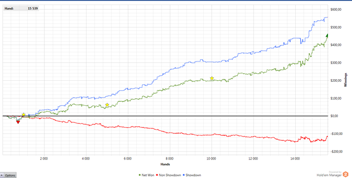 Однако, мне очень тяжко играть против неизвестных оппов. Да и стеки в 2.5 раза глубже - есть милипиздрическое давление