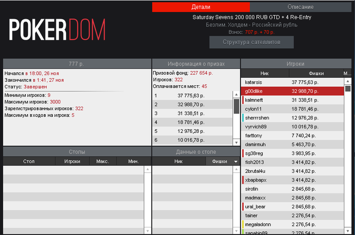 Реально было нелегко. После окончания поздней реги, остался со стеком в 5бб, распихался и пару часов шел достойно в пятерке. Но на бабле финалки подсадили на стол к чипаку, у которого был 1кк фишек при среднем в 250к. Не трудно догагадаться, что там творился террор))). Финальный стол, в сравнении с прошлым, был гораздо сильнее