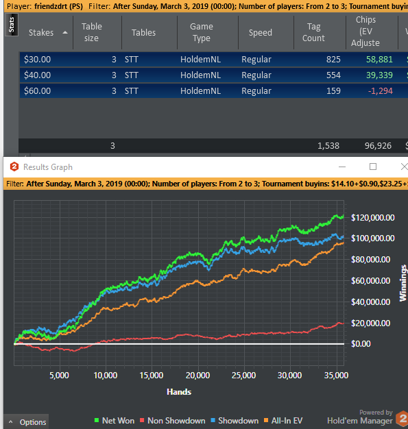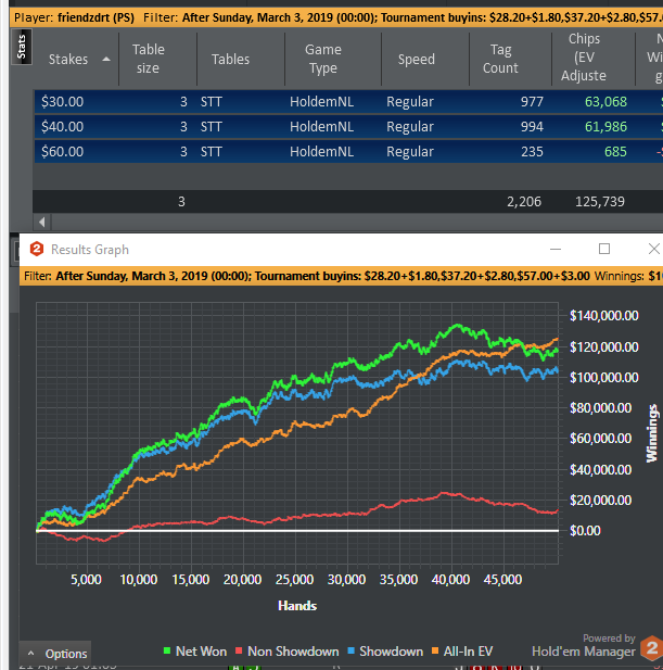 К сожалению, с конца марта совсем выпал из работы. Жизнь вносит свои коррективы, и плакали пока мои планы по наигрышу дистанции. Как-то разом повываливалось отовсюду всё то, что долгое время игнорилось в период безвылазной работы в Win-Win. К концу мая должен буду окончательно раскидаться. За столами маленько прищемило недодачей, из-за чего начал недобирать по выходам в HU и соответственно по cEV, но по идее это дело бьется дистанцией. Которой пока нет Апдейт графика с момента вступления в пул. Несмотря на постоянные перерывы в работе, в принципе уже уловил свою крейсерскую скорость в 700 турниров в неделю. Дело за малым - выделять на работу фулл-тайм