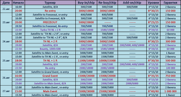 Всех кого интересуют даты проведения серии SHAMBALA POKER TOUR в сентябре, то они следующие 5-11 и 19-25. Также в сентябре будут разыгрываться путевки в Прагу.