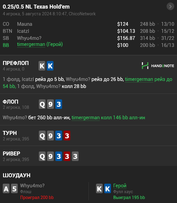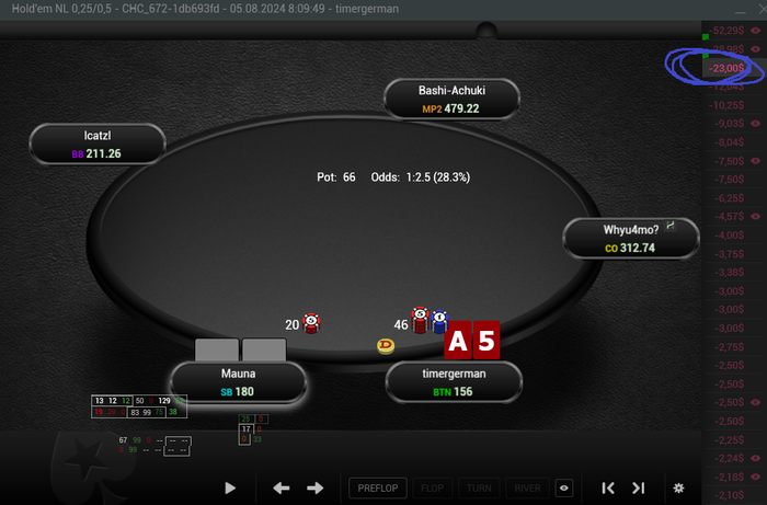я поставил 4 бет 23бб, а показывает 46. на пуш выкинул и в базе получилось как проиграл 23 бакса, хотя на самом деле 13,5 $