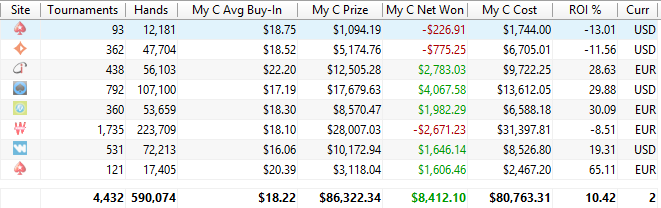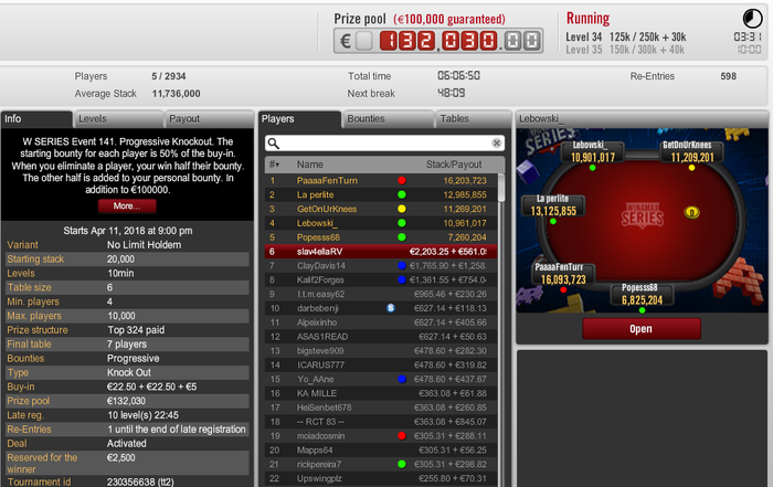 ~22 бб вс 5, 3 олына из 3 проиграно подряд, по классике. Вообще формат турнира порнравился, первые 6 уровней играем отдельно, потом стеки объединяются, и каждый игрок команды играет по очереди по уровню. 20 минут выкидываешь карты в пас, следующие 20 минут чилишь, и надеешься, что партнер по команде каточку не заруинит