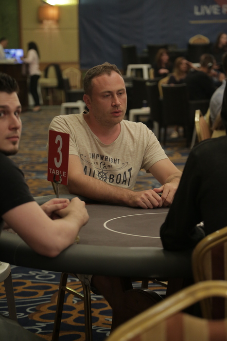 Вячеслав уточнил его стек (у Андрея осталось 20,000) и сделал колл.