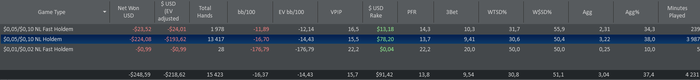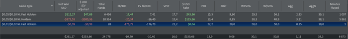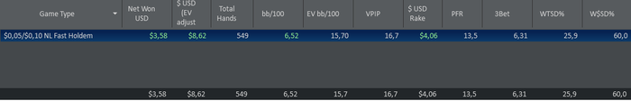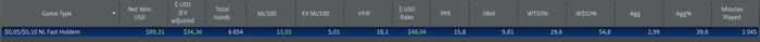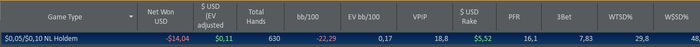 SB: $16.86 - VPIP: 27, PFR: 17, 3B: 9, AF: 2,8, Hands: 151