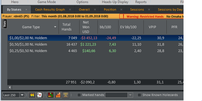 . БР просел, так что пора серьёзно взяться за игру и пора начинать выигрывать. В планах в этом году начать играть 400-600, а БРла даже на 200 нету. А в декабре достраивается квартира, и на ремонт порядка 10к надо. Значит до конца года нужно закрепиться на 400-600 и оставить комфортный БР с учетом кешаута 10к. А это есть порядка 25к+ профита. Вполне выполнимо если не буду тильтовать и плотно катать хотя бы по 50к рук в месяц, ну и конечно надо чтобы шот на 400-600 был удачным, ну это уже другая история.