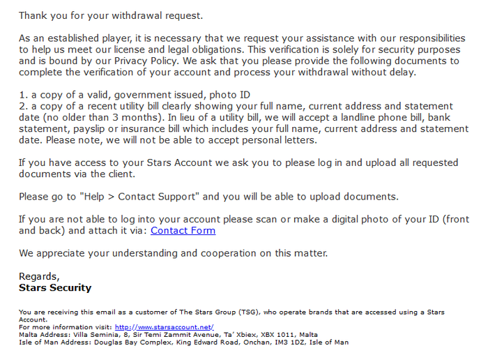 7piki, спасибо . Написала по вашим новым адресам , тоже тишина. В онлайн переписку не войти потому что бан. Похоже на кидок. Скорей всего схема мошенничества давно отработано: если выигрываешь и ставишь на вывод то бан . По рекомендовала мне подруга данный рум. Всегда играла на 888 там проблемы с выводами нет.
