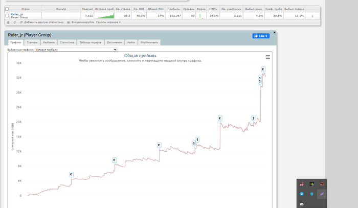 Это общий график, проект запустился примерно на отметке в 175к турниров