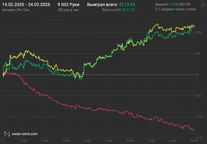 Я после своего поста про смену стратегии прям хорошо иду, тьфу-тьфу-тьфу, все сессии плюсовые, создаётся ощущение, что как будто хорошо бью nl10. Понятное дело, моя уверенность в себе сильно выросла и как будто напрашивается вывод, что нужно не просто работать над игрой, а делать это очень правильно и тогда результат пойдёт. Ну, не важно.