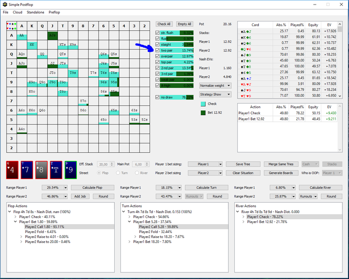 HarryPotter, терн бет, ривер чек. На ривере на пуш - пас. Это верно. Чекпуш терна на ставку тоже верно. Если чек чек, то на ставку платишь, на аи - околонулевое решение, тут уже смотри на агрессию.