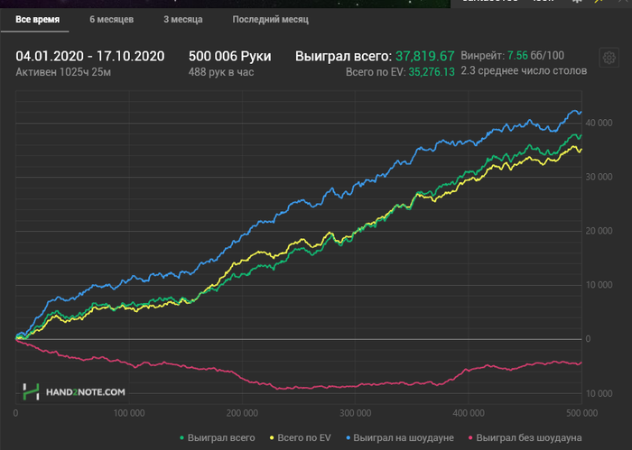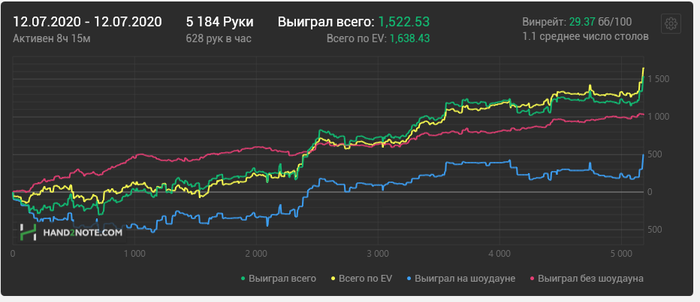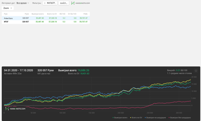 Последние 100к рук кое как докатил, очень медленно, игра если и собирается то на мой взгляд не особо отличается от лета, разве что столов больше, и слабых игроков, но каких? 40/5 или 35/20 которые льют по 15-20бб. Зум тоже херня. Синяя линия очень слабая, чаще если у тебя велью рука с флопа ты либо получишь фолд, либо едешь с эквити в4%, и в довесок к этому еще и по ев перебираю, мне на самом деле плевать на этот перебор, вряд-ли когда то дистанция вернет сотни баинов за прошлые года недодачи, так что не парюсь особо. В хорошей ли форме играю? , нет конечно, режим не понятный, в зал не хожу, сидишь чекаешь столы, и играя в каком нить 3махе, появляется раздача якобы которую разбирал в Пио, и пио точно говорил что в этом банке на ривере можно запихнуть стек в400% пота, задонатив пот регу идешь ее смотреть в солверчик дабы убедится что линия ТОР, в итоге и пот не тот и сайз максимально ублюдскийи, и банк не выйграл((