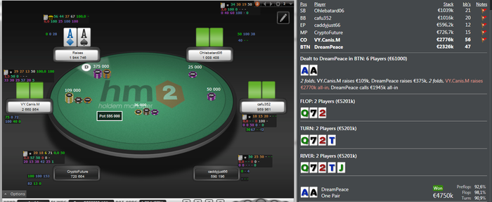 Winamax, $18 Buy-in (75/150 blinds, 20 ante) No Limit Hold'em Tournament, 6 Players Poker Tools Powered By Holdem Manager - The Ultimate Poker Software Suite.