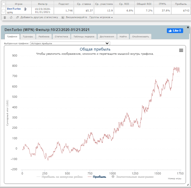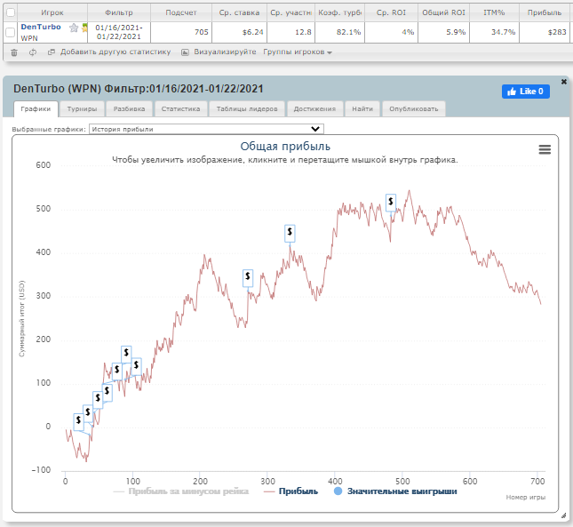 "спустился небес" Лестно, конечно, было видеть стабильно идущий вверх график, с РОИ=12-13% в одностоловых турнирах, но я понимаю, что мой уровень игры пока не достиг таких показателей, и РОИ=5% на АБИ=6$ результат гораздо более близкий к реальности. Так что всё нормально!