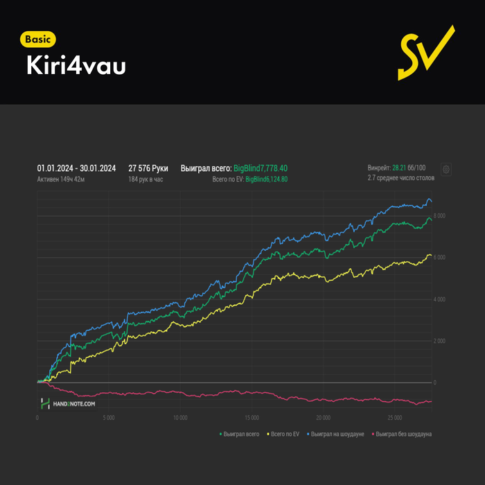 🏆 С небольшим опозданием выкладываем графики лучших игроков SV за январь. Сегодня мы пройдёмся по «ударникам покерного труда» из лиг Basic и Medium.