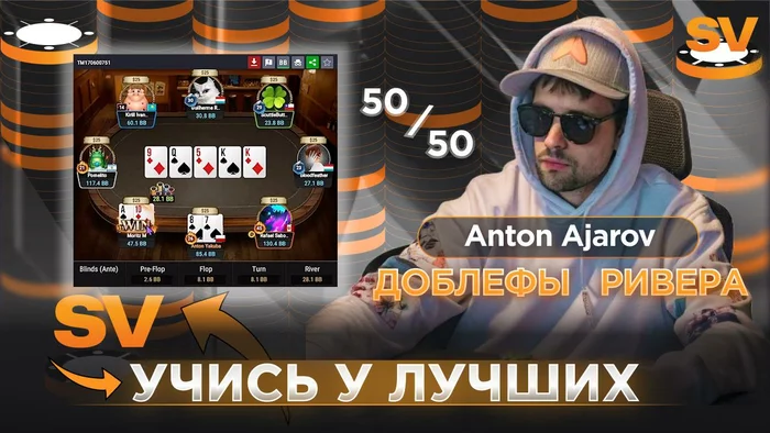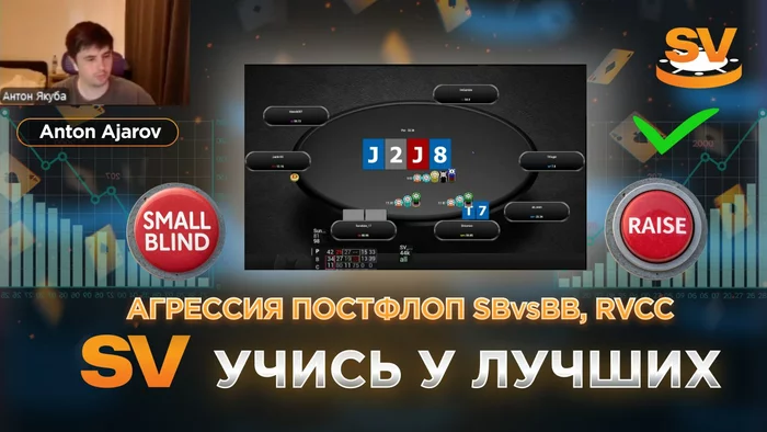 В новом видео Anton Ajarov разбирает агрессию в споте SB vs BB после Raise vs Call на коротких стеках.