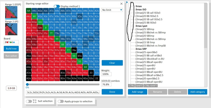 В курсе кто-нибудь, есть ли какой-либо вариант импортировать ренжи из ГТОвизарда в ГТО+? Или может кто-нибудь подскажет сервис, где можно конструировать префлоп ренжи и грузить их в ГТО+? Графическое представление ренжей в солверах расчётное, не удобное для запоминания.