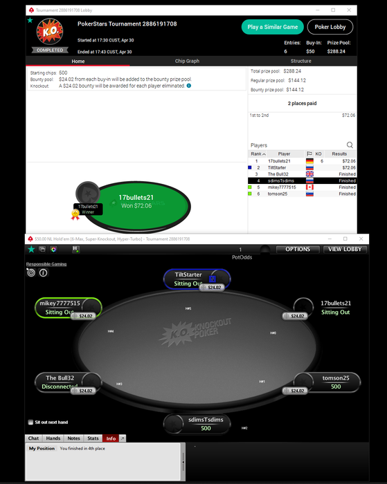 GT_Tech, привет, играю снг на ПС, периодически появляется ошибка при которой турнир запускается, но мне не дают в нем сыграть раздачи, я его просто не вижу, он всплывает когда я вылетаю и в этот же момент всплывает окно с ошибкой, но я ее не могу, SH закрывает окно сразу же. Обращался в поддержку, бвй-ины возвращали, но писали что это не их вина. Советовали переустановить клиент и исправить ошибки в реестре, не помогло. Поменял интернет на 4g модем, которым раньше не рльзовался, тоже не помогло. Заного установил винду, тоже не помогло. Ошибка стала появлятся после того как я поменял интернет провайдера несколько месяцев назад. Я думаю что это происходит из-за того что мастер при подключении при изменении настроек сети. Могут ли быть другие причины вроде проблем с H2N, SH, HM2? Я использую их всегда и одновременно. После переустановки винды сохранял конфиг для H2N и настройки для SH, все остальное настраивал в ручную. Если проблема с настройками сети, то как ее решить. P.S. Если у кого то была такая же проблема или кто то еще знает как ее решить, то пишите в ЛС, заплачу за помощь.