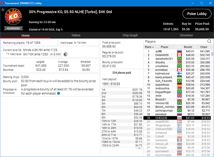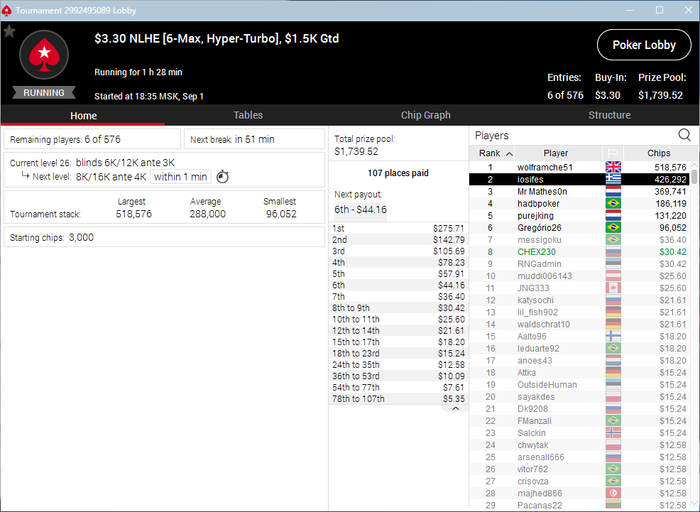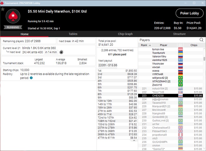 Проснулся, просто перегорел уже от покера, возьму 3 дня выходных (по вечерам не играть) чтоб в субботу быть голодным, обидно за себя что вчера шёл 1 из 20 а занял 17 и в других туриках делал ошибки!!!