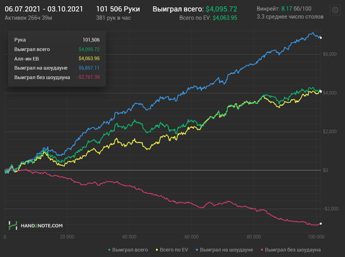 Отыграл первые 100к рук на нл 50 (начал где-то в середине августа). Результаты удовлетворительные. Хотелось бы лучше, но зато есть место для прогресса.