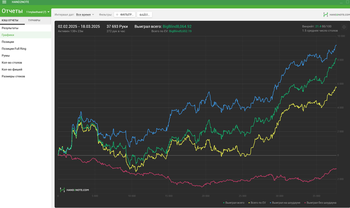 Что хочется выделить, то что когда я отключил лимиты 400+ на айпокере, и удалил аккаунты с приложениями где есть игра 1-5к, в ущерб тому, что игра там была и на моих лимитах(которую я бил). Моя игра и отношение к ней сильно изменилось в тот момент. Я задумался об этом, проанализировал почему так. Пришёл к тому, что когда я играю условно нл400, допустим проиграл стек, потом кулер, и вот ты уже внес 1200 за стол, что = 6 стекам комфортного тебе лимита. Чтобы отыграть которые, нужно потратить пару дней. У меня ведь нет нл400 столов в ежедневной катке, я не играю 6 макс, условно даже в 3бб на 400. Пришёл сел за столы и печатаешь, нет, нет такого. Такое у меня только на 200. В общем один из важных факторов в кол-ве игры.