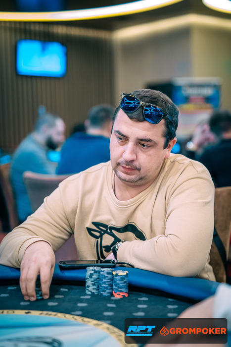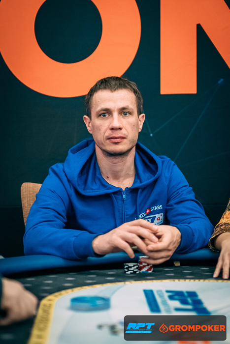 За соседним столом Котляр оупен 2,800, Игорь Зубков ответил 3-бетом 8,000 и получил колл от Андрея Елисеева, Антон из раздачи самоустранился. По флопу на с-бет 15,000 от Зубкова, Елисеев объявил оллин 25,000.