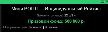 Основной рум рэд, две микрофиналки, 1 и 2 место, сейчас на ПД начнется мини-РОПЛ, попробую откатать плотно.