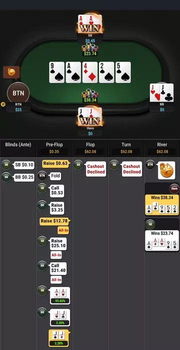 Ноо, да. Пару раз я зассал вскрыть. Все таки в 100бб+ мне пока грустно делать хиро коллы.