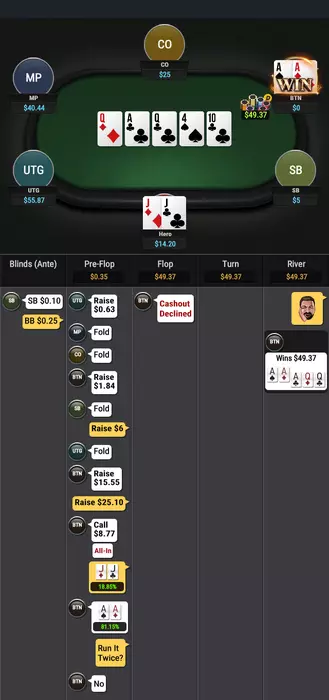 А план был брать страховку на флопе 😂 Но увы, 4 тузы за сегодня.